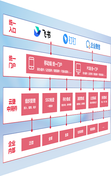 对协作平台提供支持服务,,支持企业应用与协作平台对接,,,,包含组织同步、、消息集成、、、待办集成等。。支持目前主流的协作平台:钉钉、、、、企微和飞书。。。